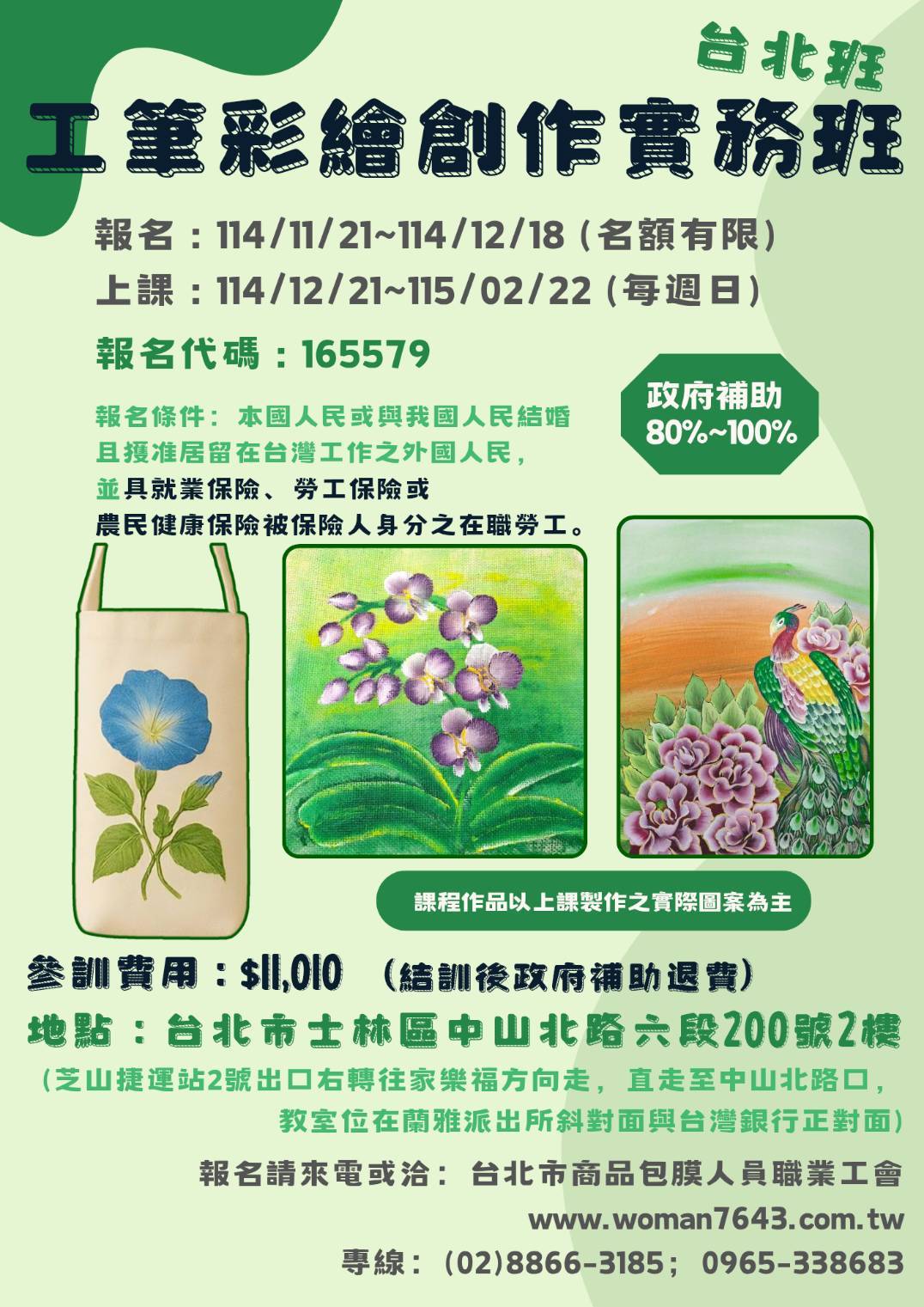 開訓典禮/教務管理/彩繪歷史與風格認識/背景與藝術價值/常見畫種與題材介紹各式花卉認識/彩繪必備工具與材料介紹/ |