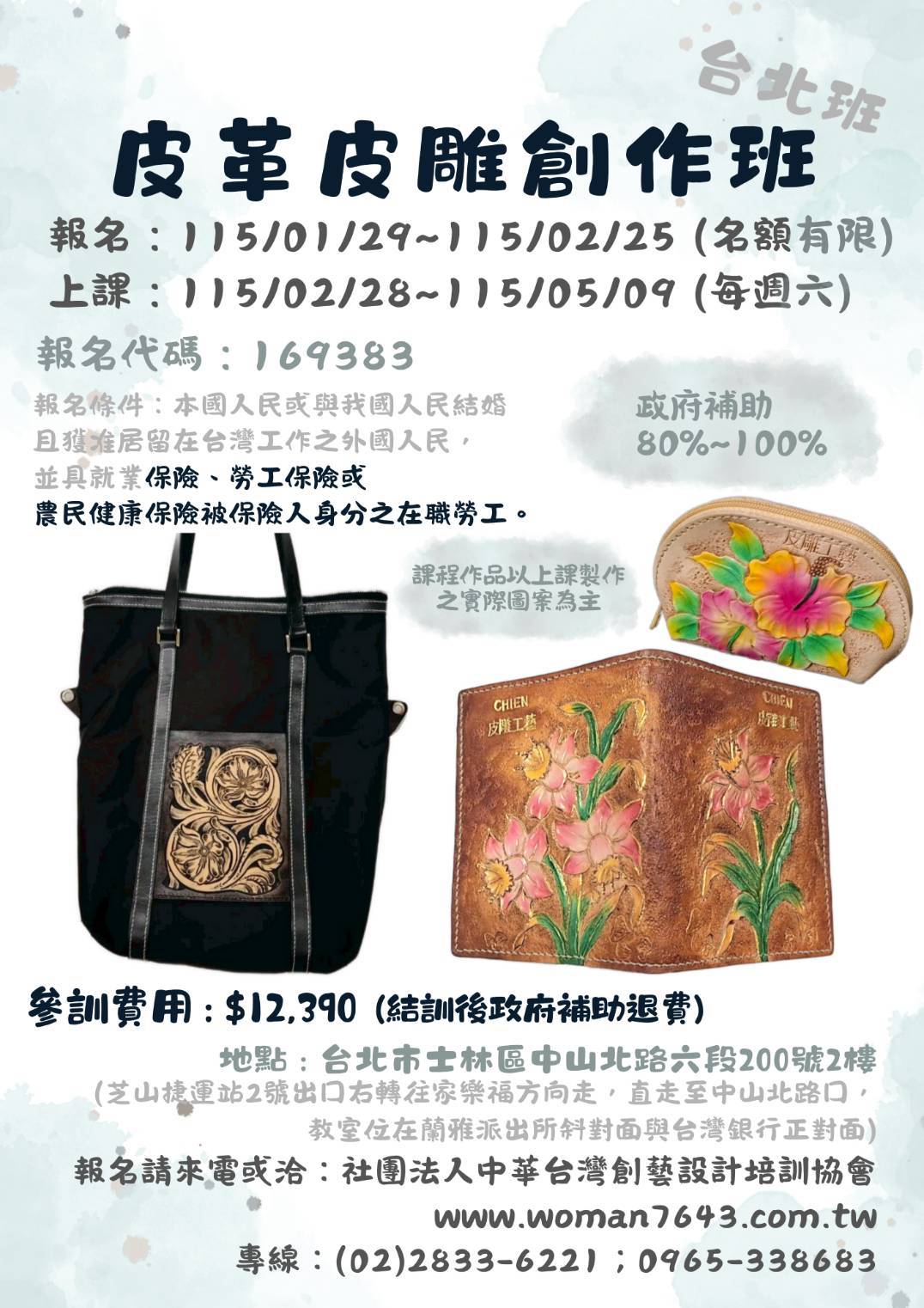 專長:山水.動物.唐草等皮雕製作教學/產投講師-皮革皮雕實作班(1.4.6)+皮革皮雕製作實務班(1.1.3.5)+皮革皮雕手作班/2025-23ABF職能創意大賞評審/2024-23亞太盃美業交流競賽手工藝評審/2023APHCA中華奧林匹克盃交流競賽評審/2022APHCA台灣亞太盃交流競賽-評審+博學講師+皮革皮雕組冠軍/2021NTT國際創意美學技能競賽-評審+碩學講師/2021皮雕工藝組佳作/2020-21康橋國際學校秀崗校區-皮革工藝社社團講師/2019與國立彰化生活美學館林幸輝師生皮雕展,台北市商品包膜人員職業工會+基隆市商品包膜服務人員職業工會+社團法人中華台灣創藝設計培訓協會+臺北市裝飾藝術文創產業工會講師/2018-17臺灣工藝發展中心設計分館-工藝師/2016彰化縣立美術館-玩皮世界設計展+臺東縣客家文化園區-革藝美展,從心出發+國立彰化生活美學館-玩皮世界設計展/2013海洋大學研習班皮雕作品展/1998國立手工所巡迴展