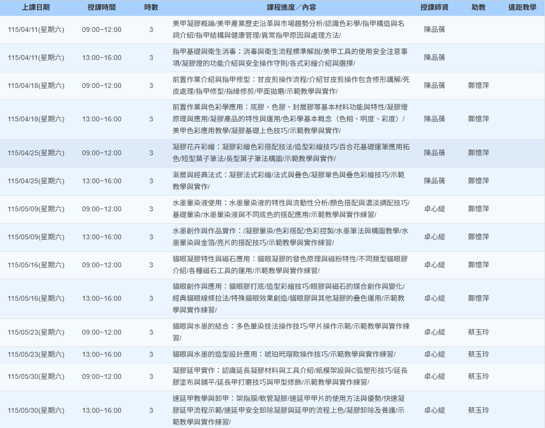 115上(基隆)指甲凝膠彩繪班第01期 課程代碼:169417