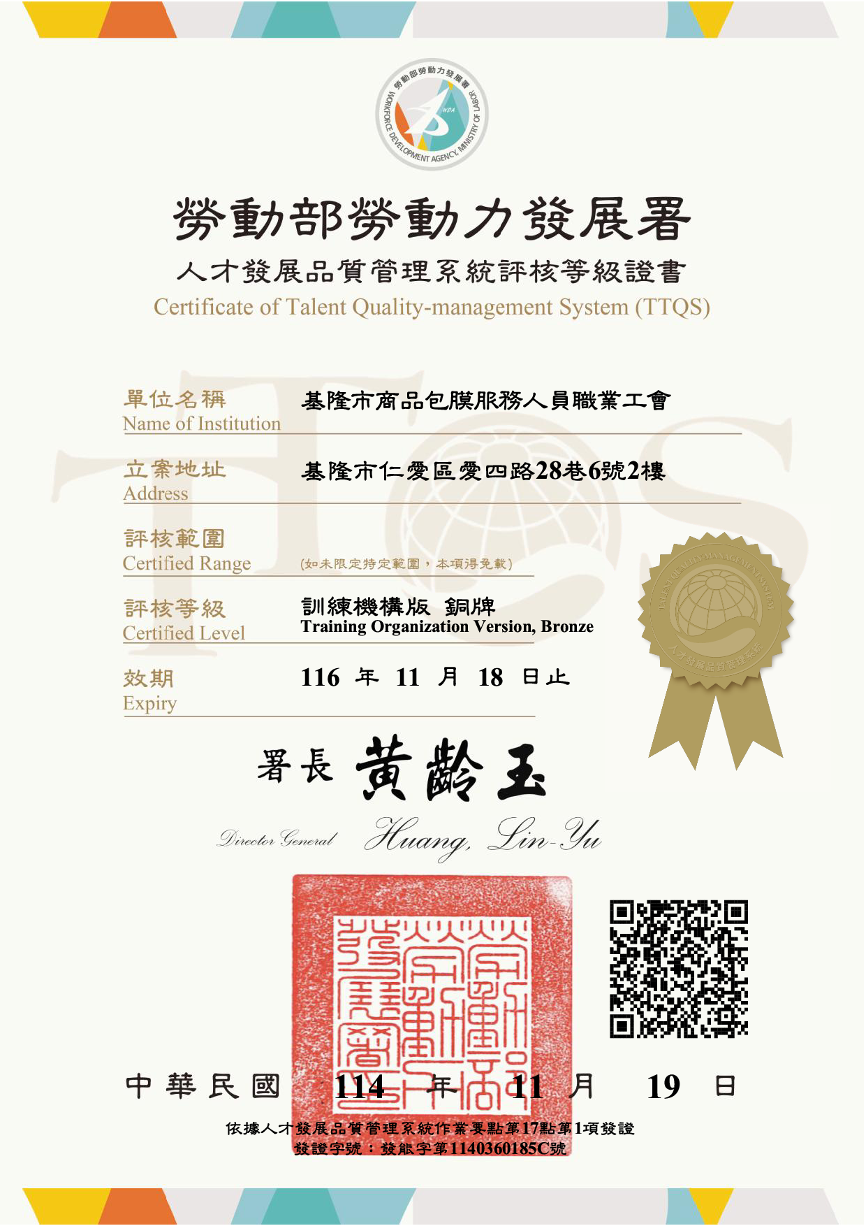 工會簡介 選單 工會簡介 宗旨任務 願景使命 訓練政策 訓練承諾 組織章程 組織架構 理事長介紹 入會方式 會員福利 聯絡我們 基隆市商品包膜服務人員職業工會 【 工會簡介 】 本單位獲得 TTQS 評核銅牌,依據本會章程辦理各項教育訓練,以倡導有意發展皮革商品、時尚彩繪商品、飾品商品、3C 產品包膜、裝飾貼鑽商品、布類商品、木製商品、金銀珠寶加工商品、蝶谷巴特拼貼商品..等從事手工藝商品包膜、手工藝商品製作之技能教學 ( 銷售 ) 產業之培訓。 回上一頁